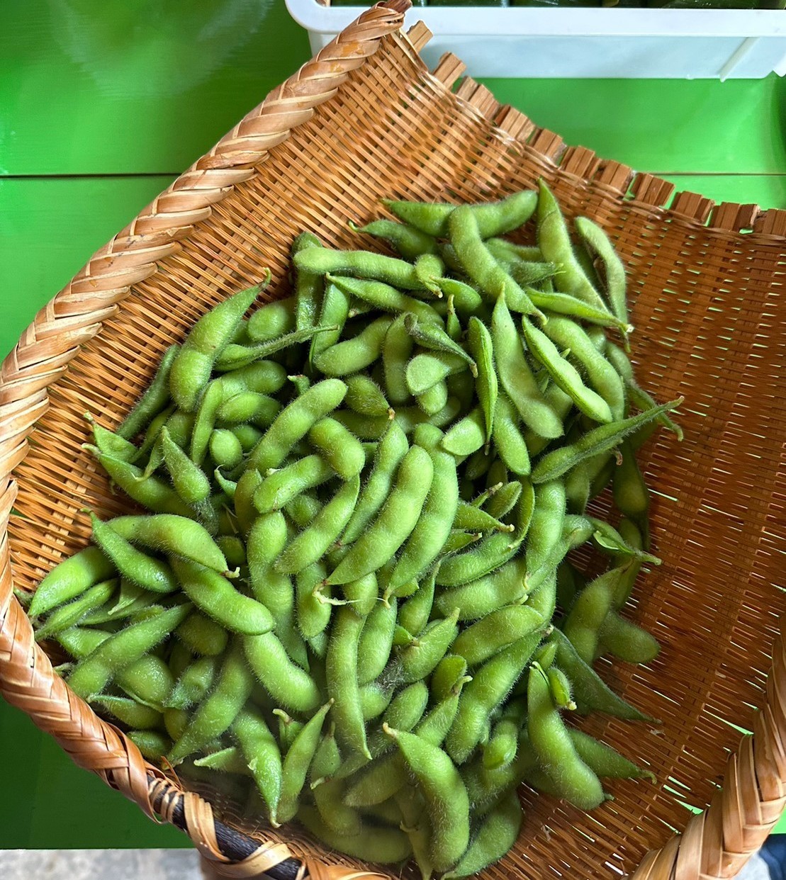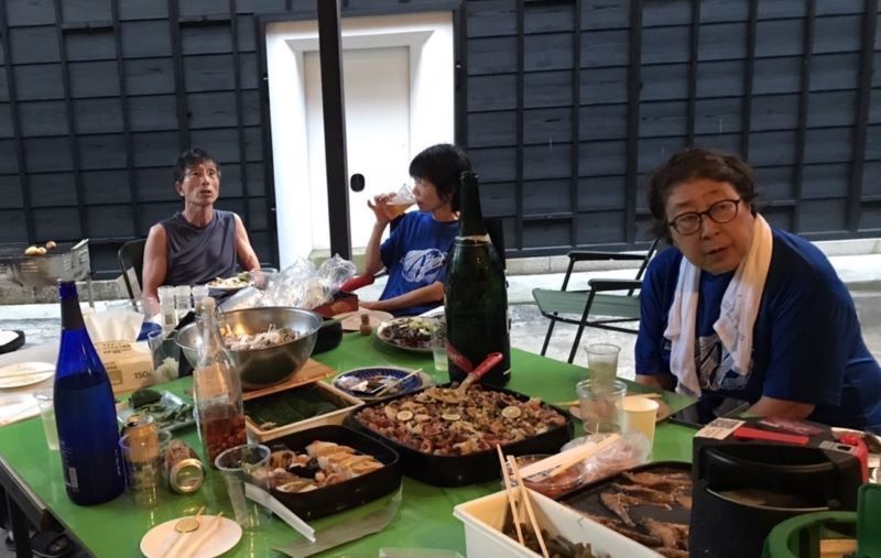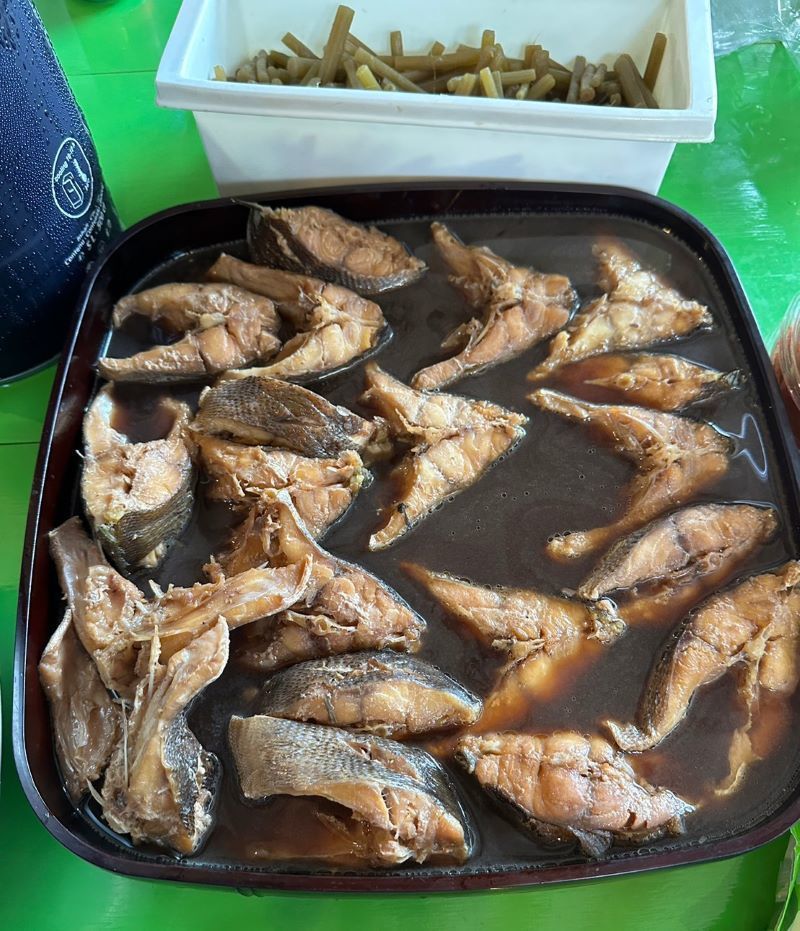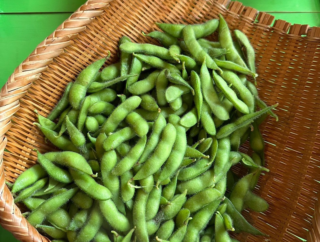 ▼枝豆(JA能美の農産物直売所で調達)、中尾さんの釣果(イサキの煮物、イサキの笹寿司)