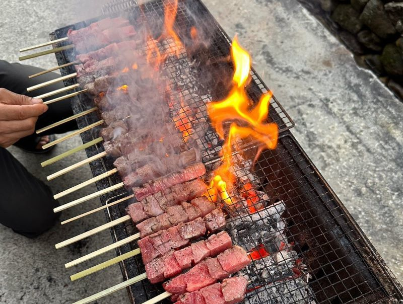 ▼大人気の千屋牛(from中尾夫妻)、砂田さん持参のスイーツ