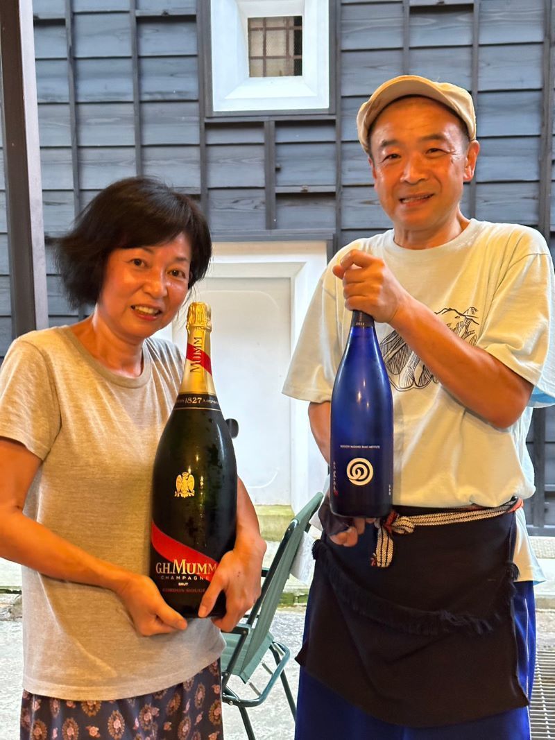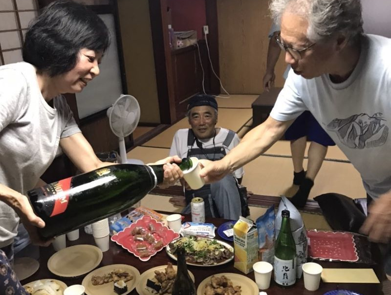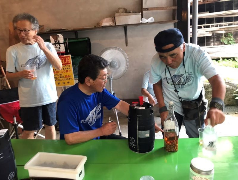 宴会前には山ちゃんの採取した大島桜のサクランボを池田さんがホワイトリカーで漬けたお酒も披露。