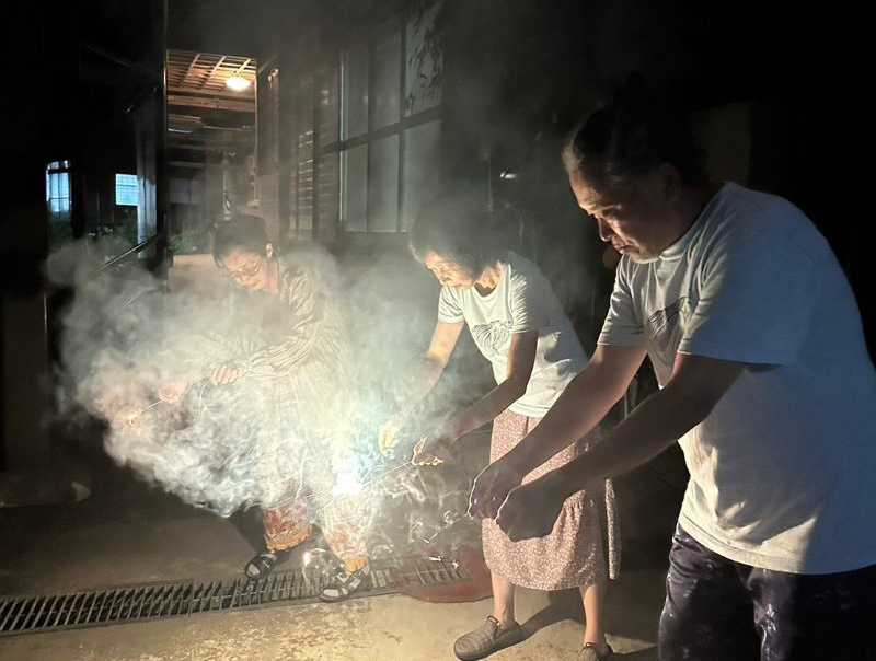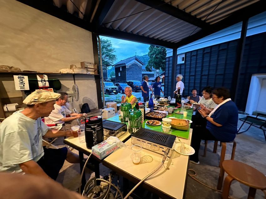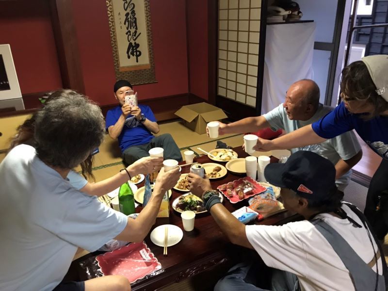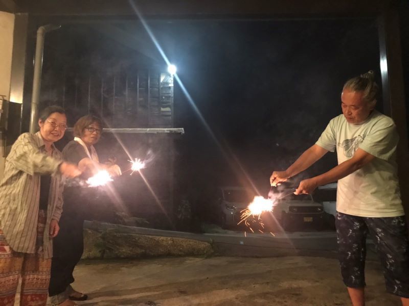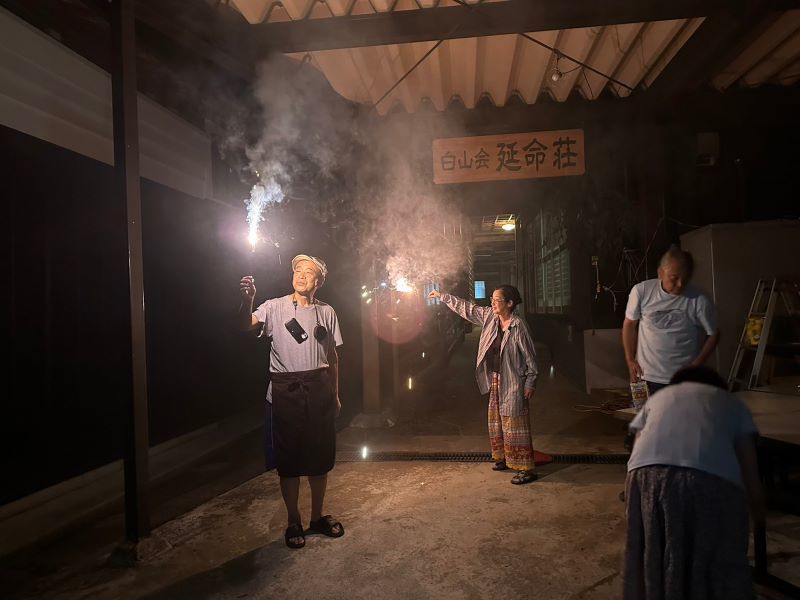 ▼二日目の宴会は初日忘れの花火も