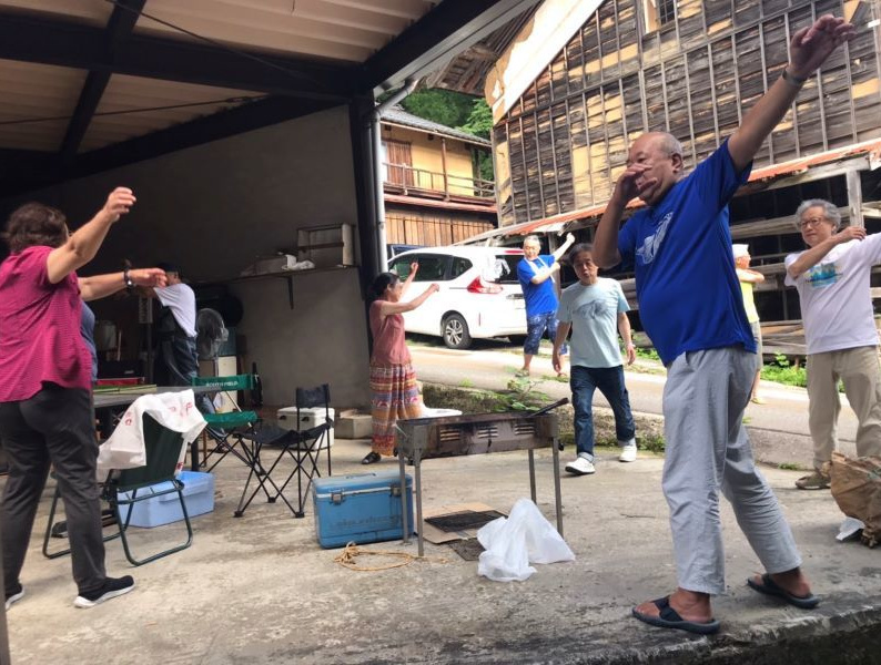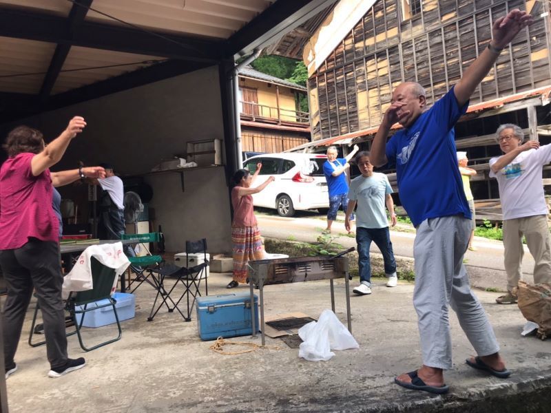 ▼まずはラジオ体操から一日が始まります
