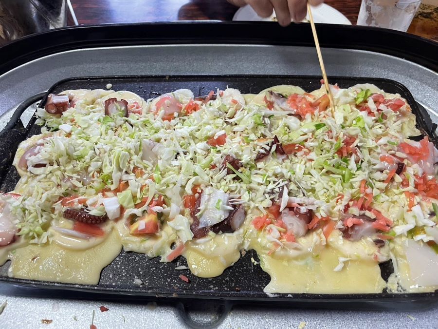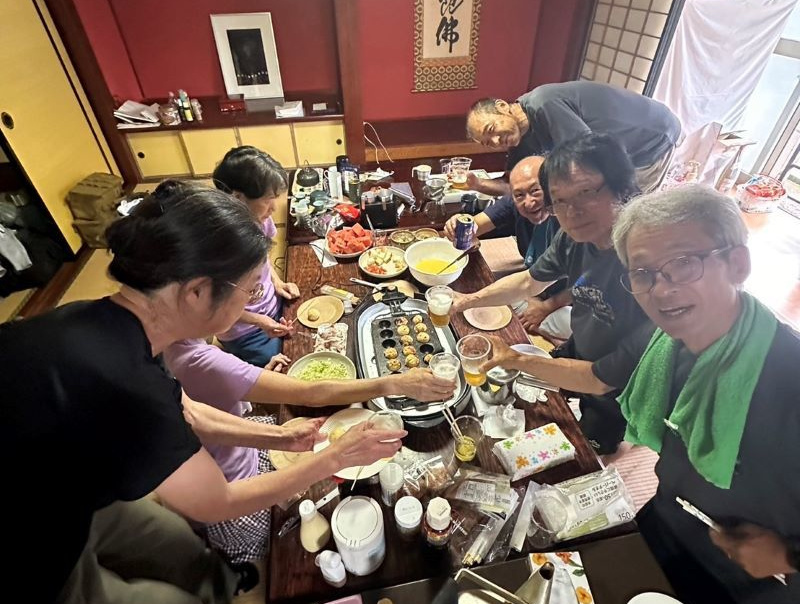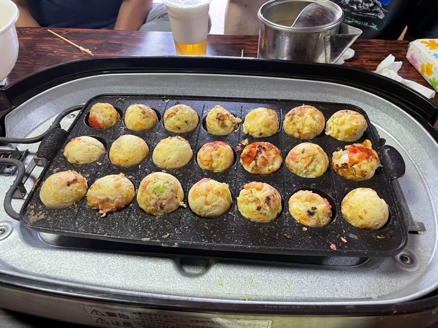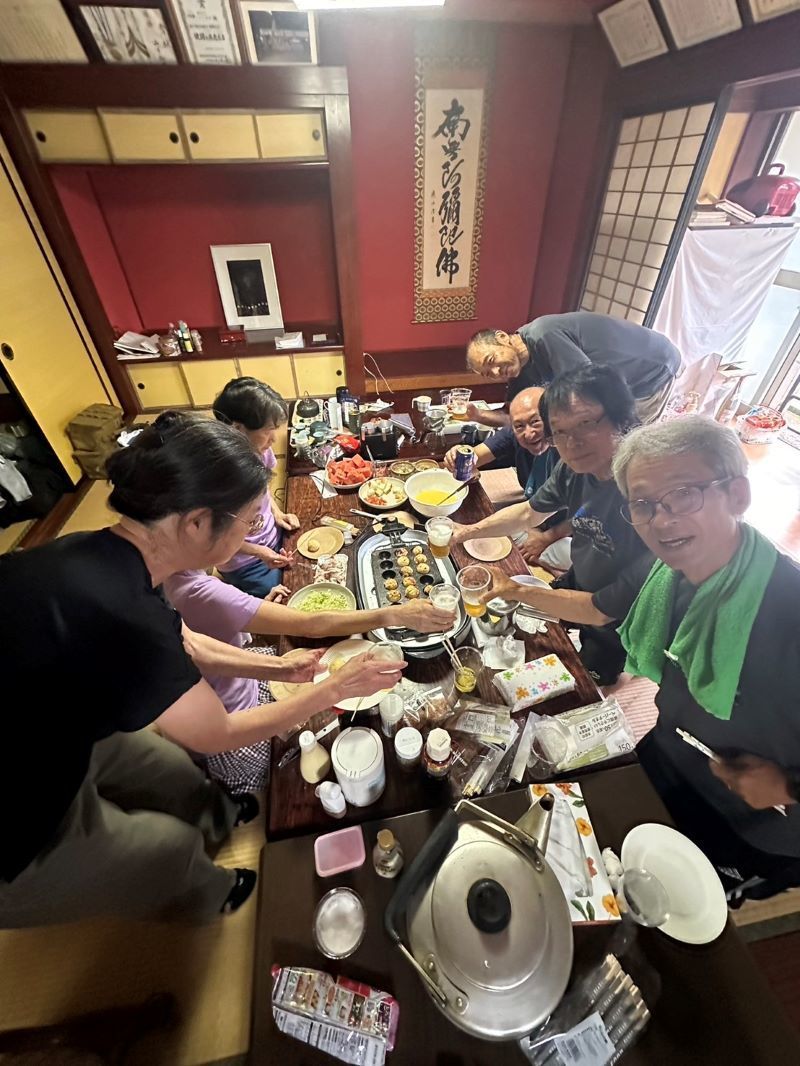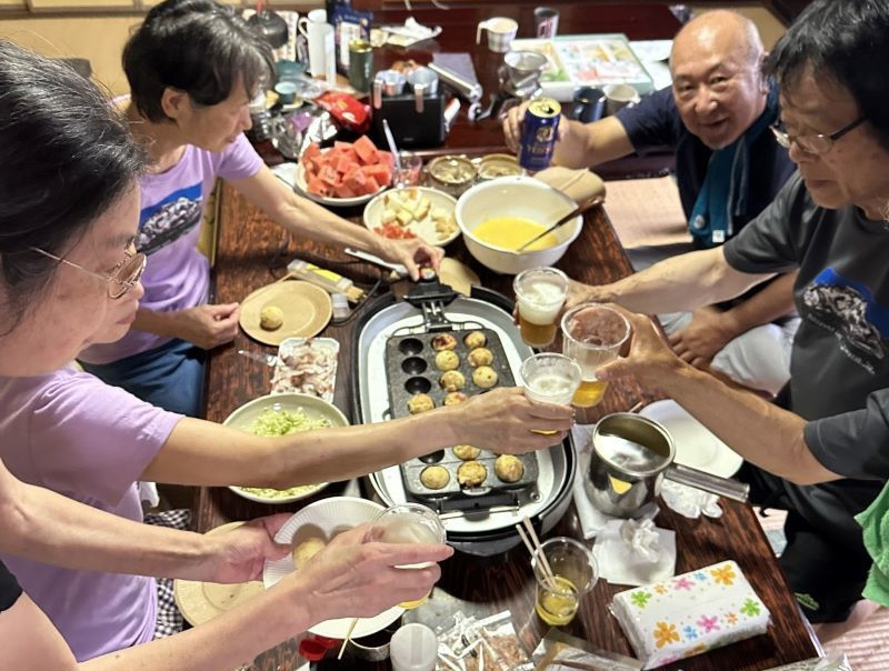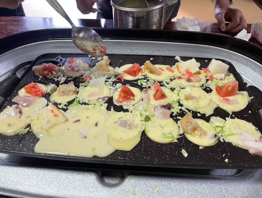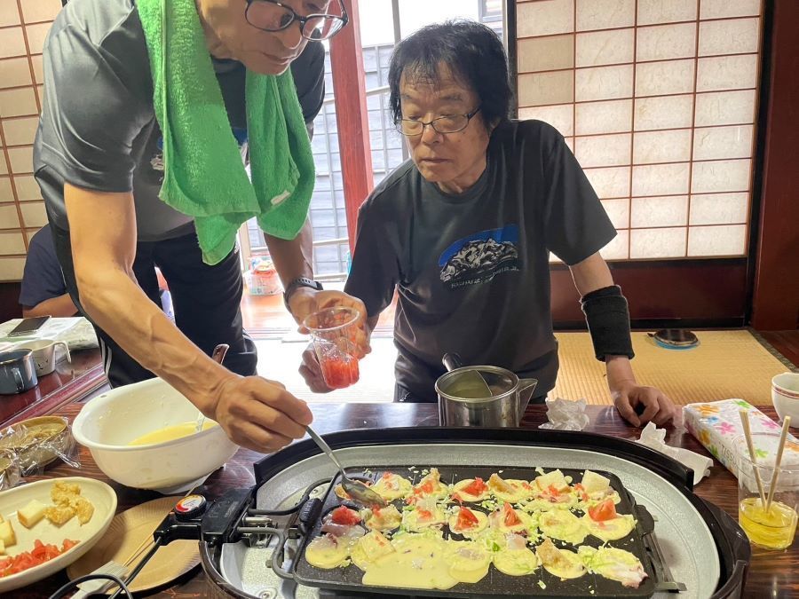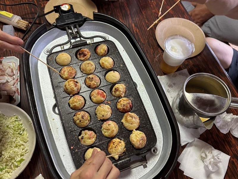 ▼二日目の昼飯はタコ焼きパーティーで盛り上がり