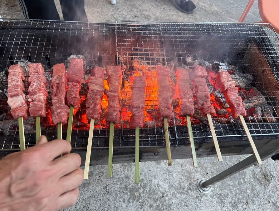 ▼二日目の宴会は大野の星山ホルモン焼をメインに