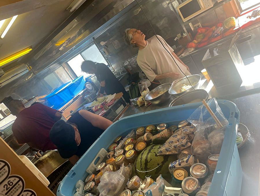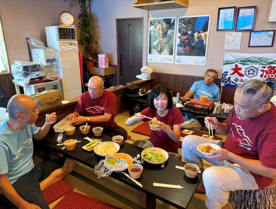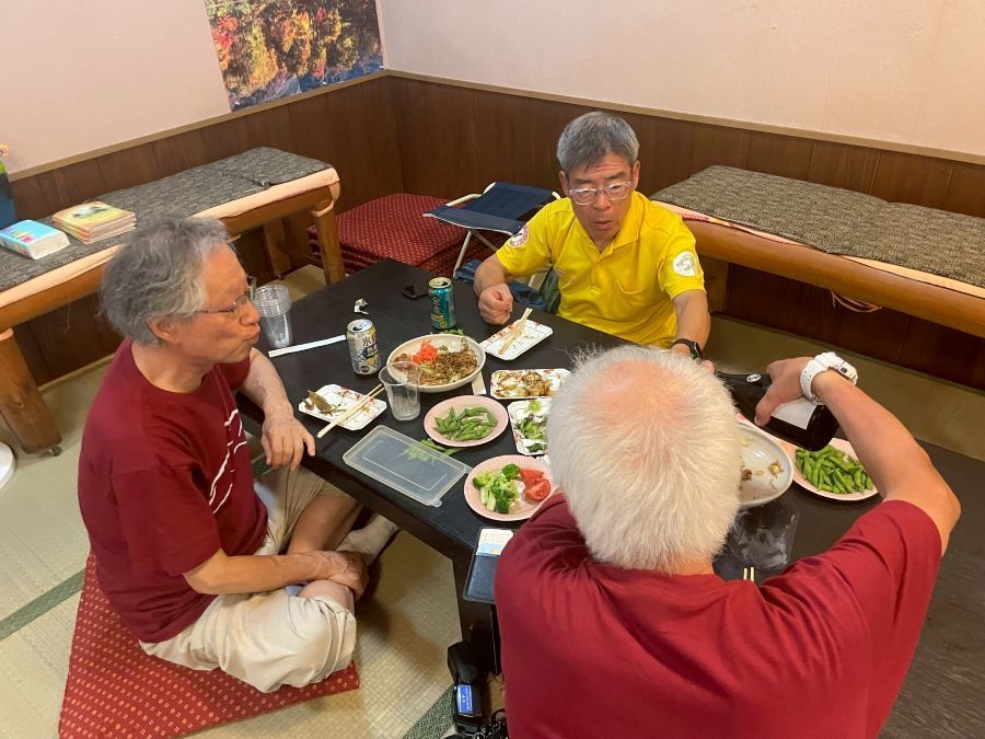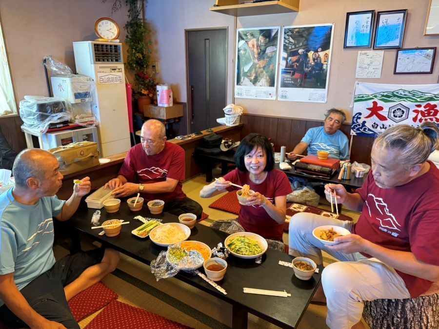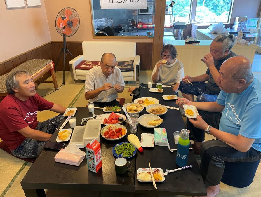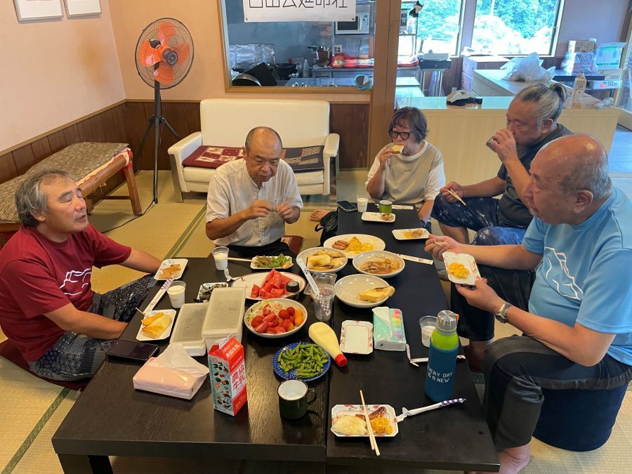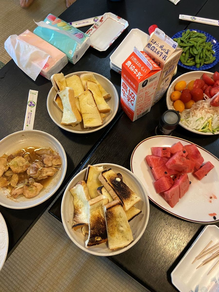 ▼左写真:20日の昼飯(ソーメン)、中央写真:21日(最終日の朝食)、
