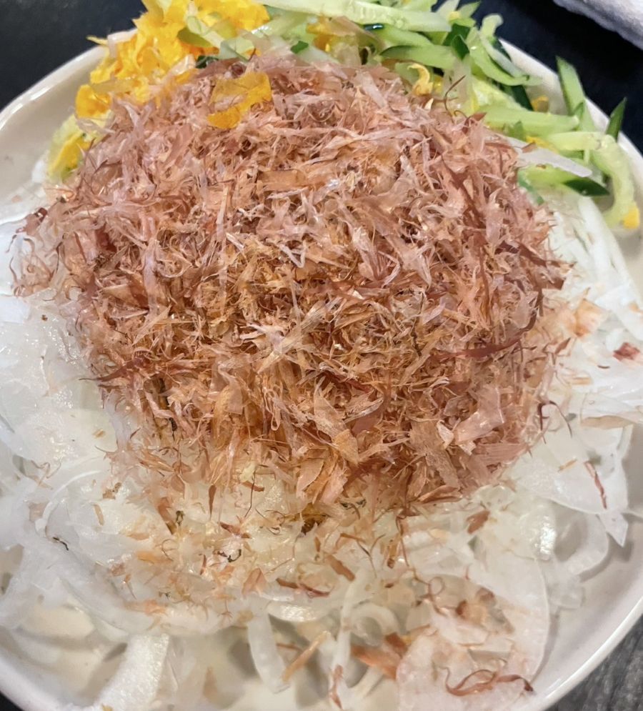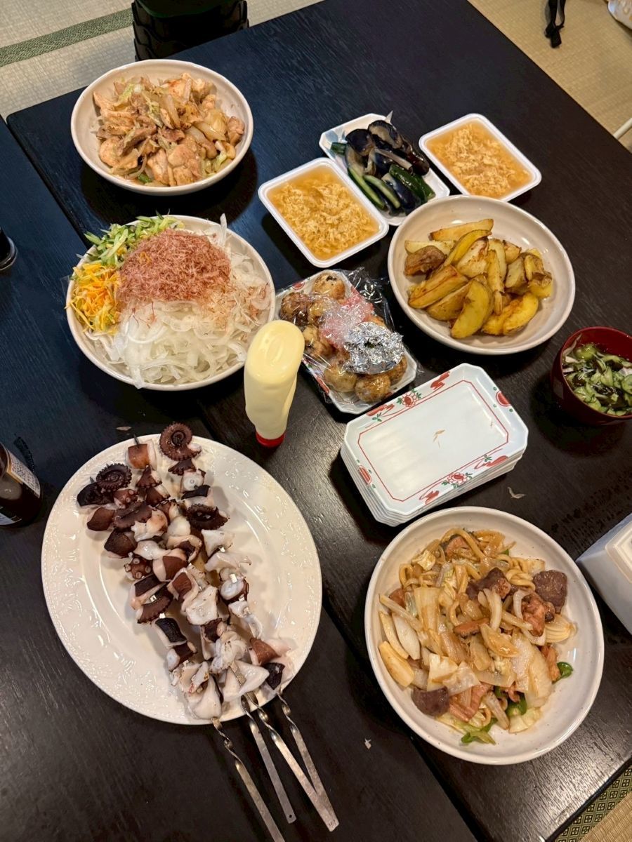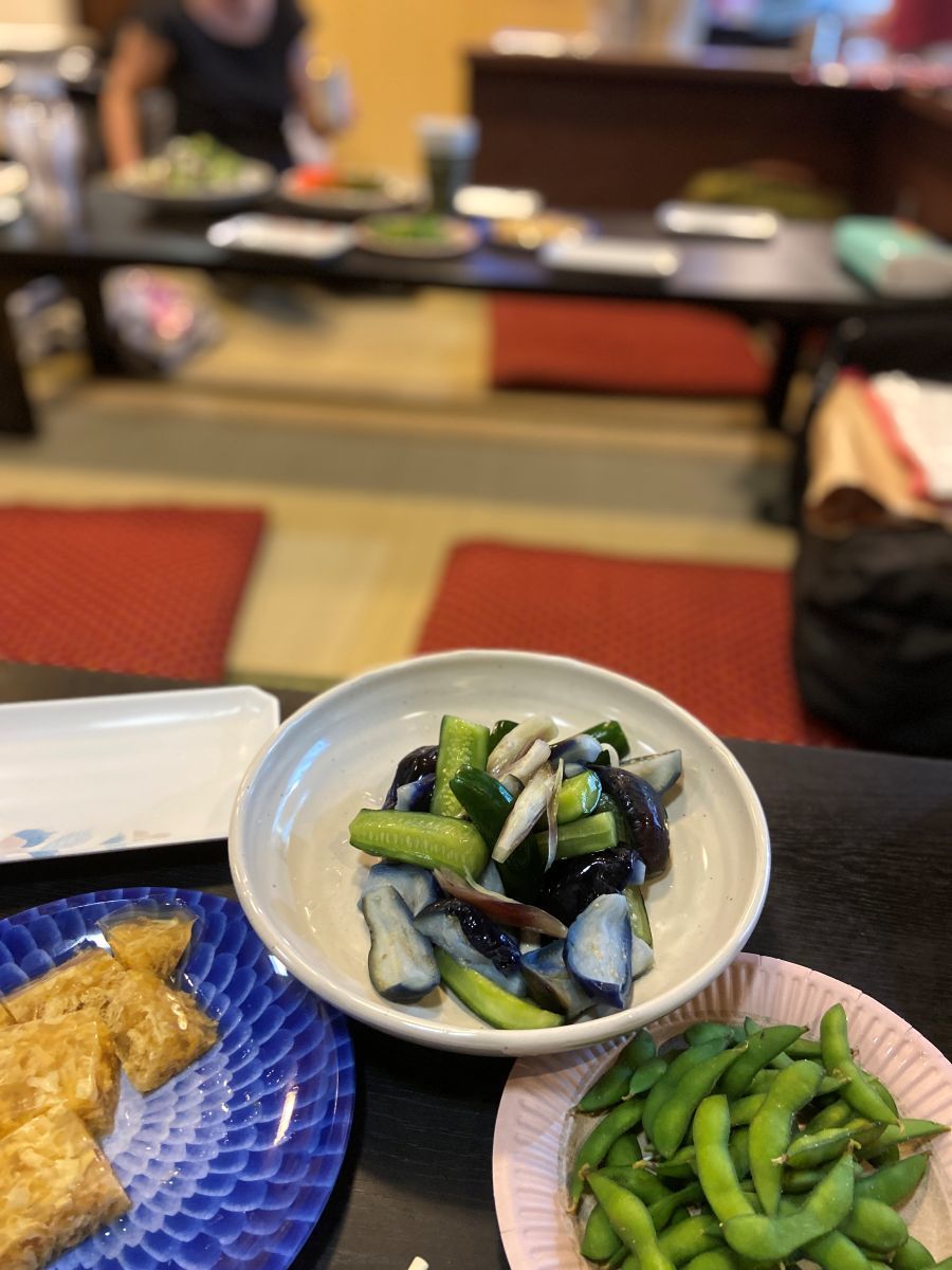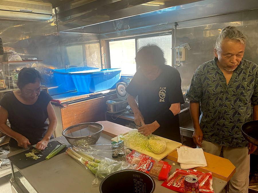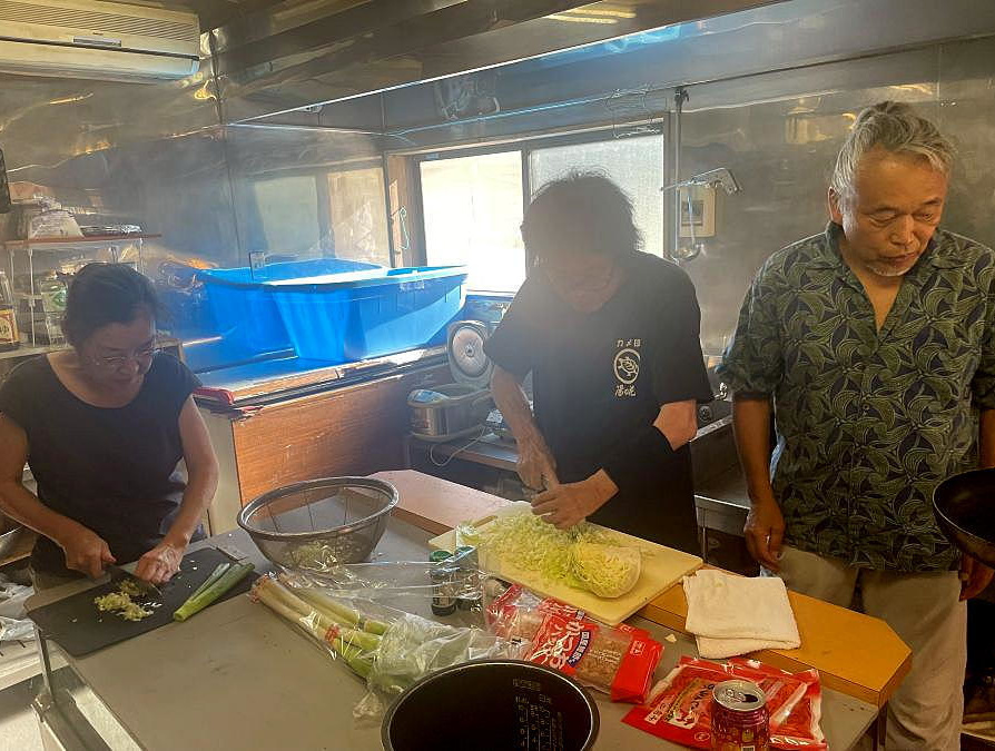 ▼左写真:20日の昼飯(ソーメン)、中央写真:21日(最終日の朝食)、