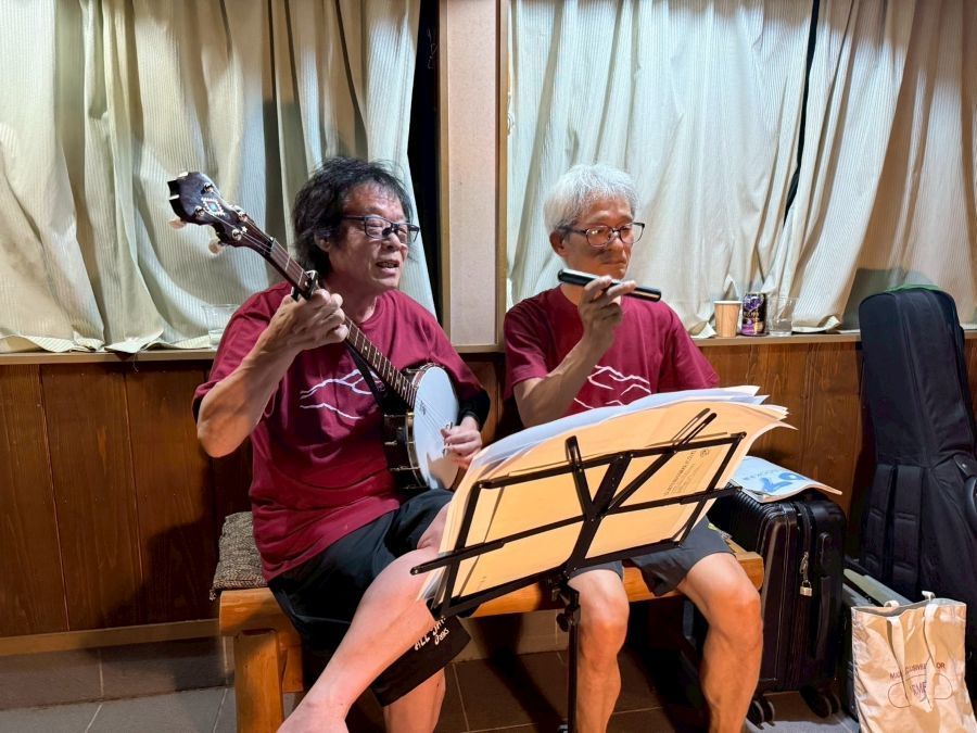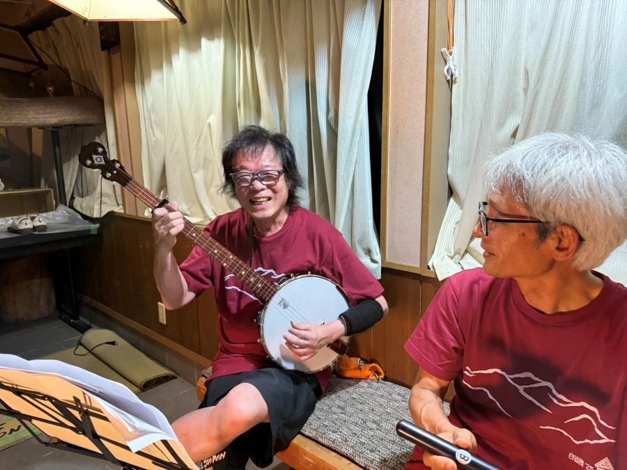 ▼宴会のあとは恒例のコンサート(カッチン&須磨)
