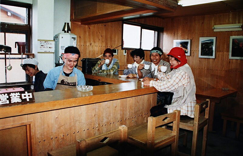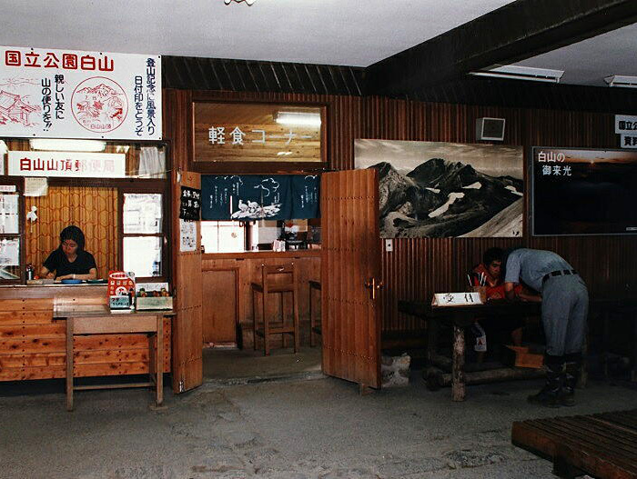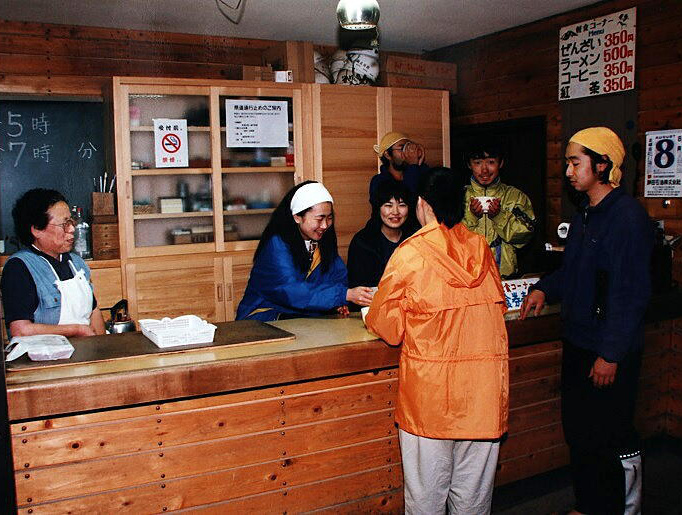 4時50分起床。1階に降りると15名くらいの登山者が夜がけで来ていた。中には勝手に受付カウンターに入り込み毛布にくるまっている強者も。室掃除のあとティータイム。昼食時、吉田さんがやってくる。