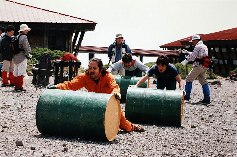 昼食後、飲料水タンク内の清掃。登山道横のロープの留め金外し。送電後、給油。給油ポンプ撤収。