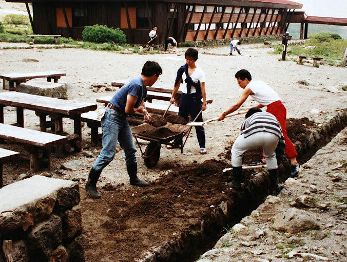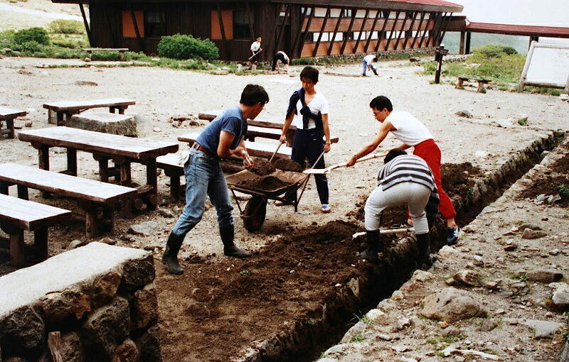 6時起床。朝食後、ごみ焼却。室掃除は特に御前荘のカビ取りに重点を置く。その後、各小屋のトイレ、センタートイレを清掃。トイレの水抜き。