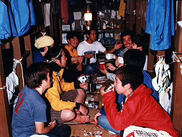 夕食後、古戸が差し入れてくれた生ビールで助っ人部隊と酒宴。道雄さんは誘ったものの参加せず、途中より池ちゃんが参加し、昔の兵隊生活の自慢話を聞かせてもらう。総勢、10名のうち女の子はほとんど飲まなかったものの、兵隊6名で7リットルの生ビールを飲み、ビールがそこを着いたとこでお開きに。22時。宿泊登山者263名。